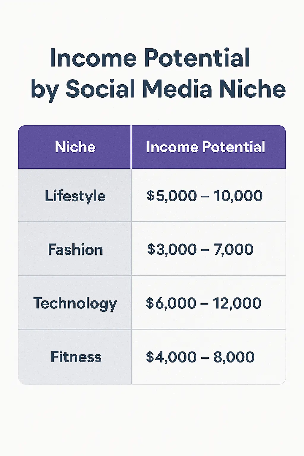 - 10,000-50,000 followers: 1,000−5,000/month from multiple income streams